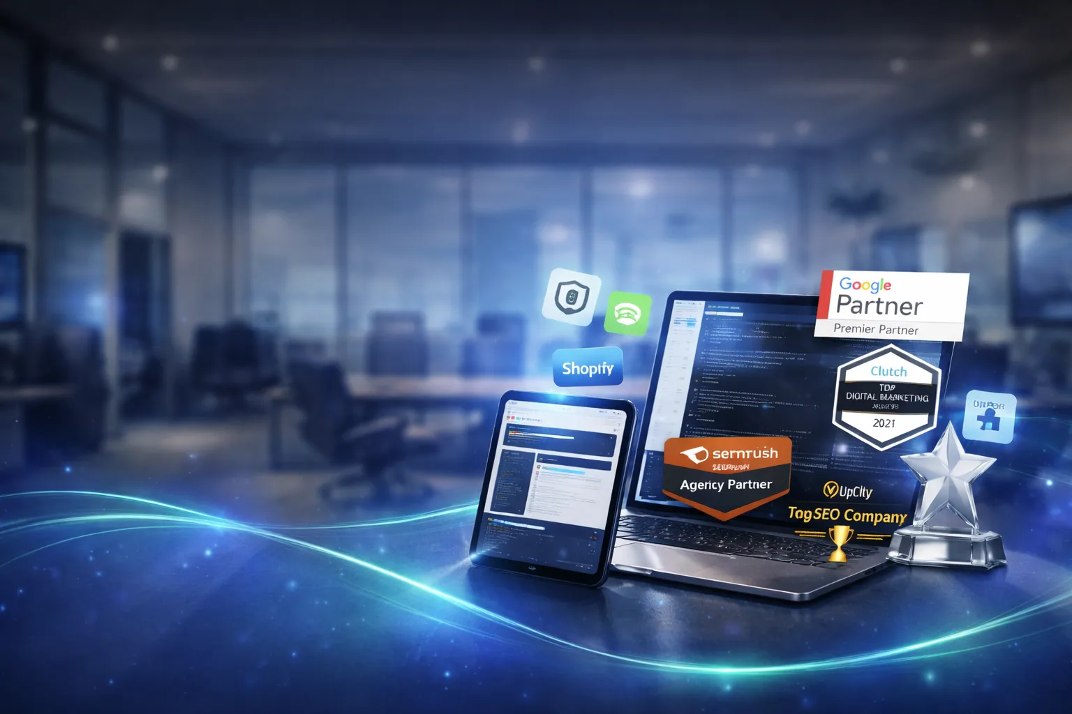 Flowrush Technologies Awards and Recognitions - Google Partner, Shopify Partner, GoDaddy and more